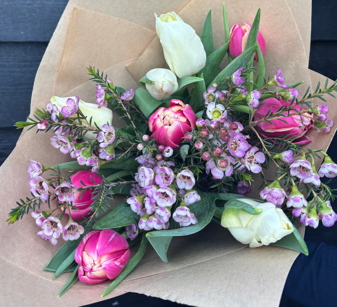 Explore our range of artisan floral styles, thoughtfully crafted for every occasion. Choose your bouquet's size and arrangement style while also personalising it with a card message. We can guarantee same-day delivery when you order before 10am - provided we have your chosen flowers in stock.