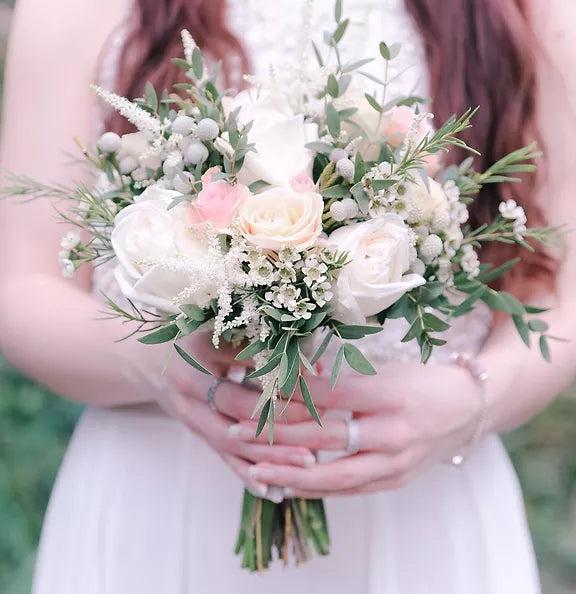 Our posies are delicately beautiful. Featuring seasonal flowers matched with fresh foliage.